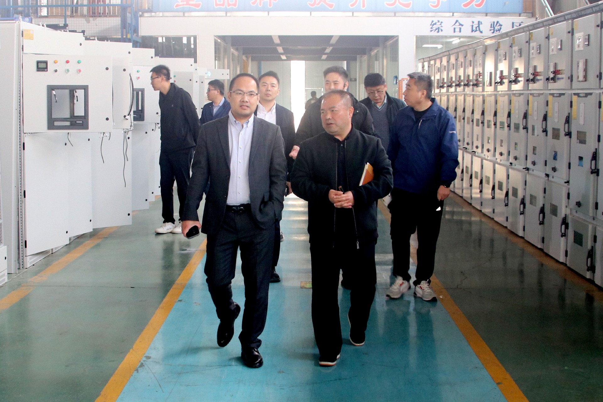 魏祥坤一行在平安电气相关负责人的陪同下,参观了企业展厅与生产车间,详细了解平安电气在产品制造、技术研发等方面的实力与成果。